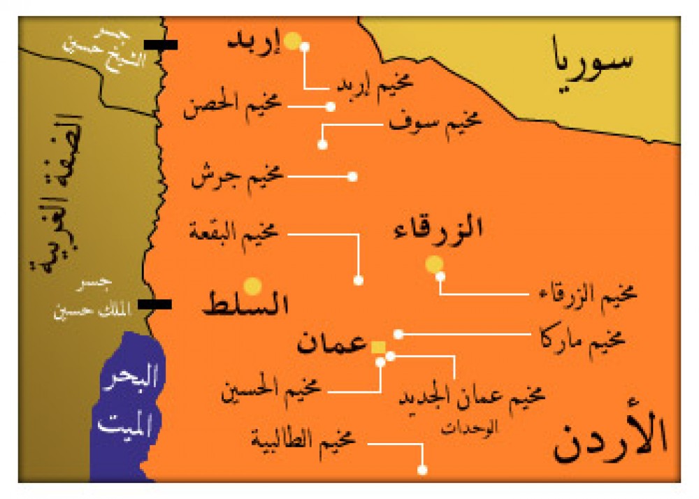وهناك ثلاثة تجمعات أخرى في عمان والزرقاء ومادبا تعدها الحكومة الأردنية مخيمات في الوقت الذي تعتبرها الأونروا مخيمات "غير رسمية".