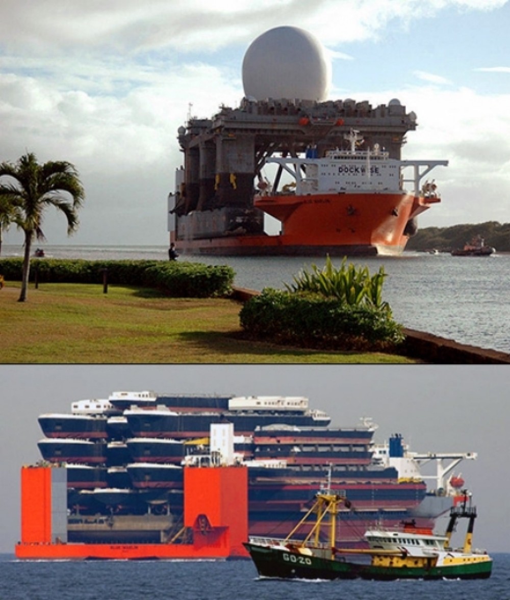 في الطرق البرية، نفاجئ من حجم الشاحنات العملاقة التي تقوم بنقل المركبات الصغيرة بين الدول ولمناطق الصيانة، وفي البحر، ستجد نفس الأمر، حيث يوجد عدد محدود جداً من السفن العملاقة المسؤولة عن نقل السفن الأصغر حجماً حول العالم، بأمان وسرعة.