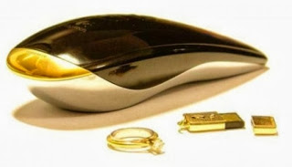 _"ماوس" من إنتاج شركة USB، مصنوع من الذهب الأبيض عيار 18، مرصع بـ59 قطعة ماسية، يبلغ سعره 26.730 دولار.