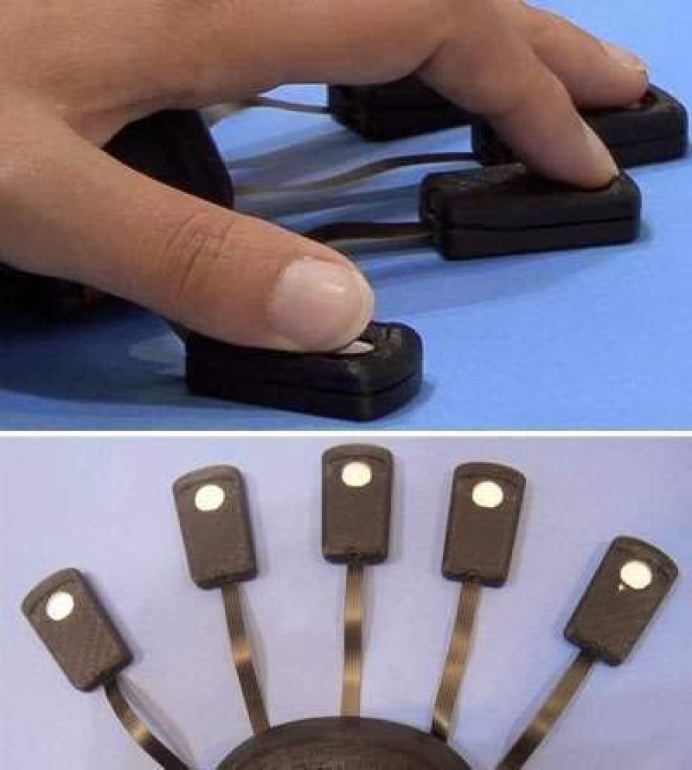 ويتكون الماوس الجديد من 5 أصابع مرتبطة جميعها بقاعدة واحدة. ويوجد تحت كل أصبع جهاز استشعار خاص بها، وذلك لتحديد حركة وضغط الأصابع كل على حدة، وهذه الأصابع تربط الفأرة بوصلات سلكية مطاطية قابلة للثني، لتكون ملائمة مع مختلف أحجام اياد المستخدمين.