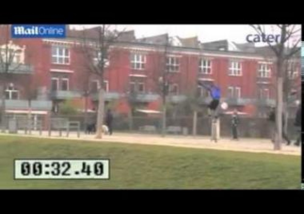 ونشرت صحيفة "دايلي ميل" البريطانية فيديو يظهره وهو يحفظ توازنه رغم وقوفه على يديه بالعكاز لمسافة 100 متر في 56 ثانية فقط.