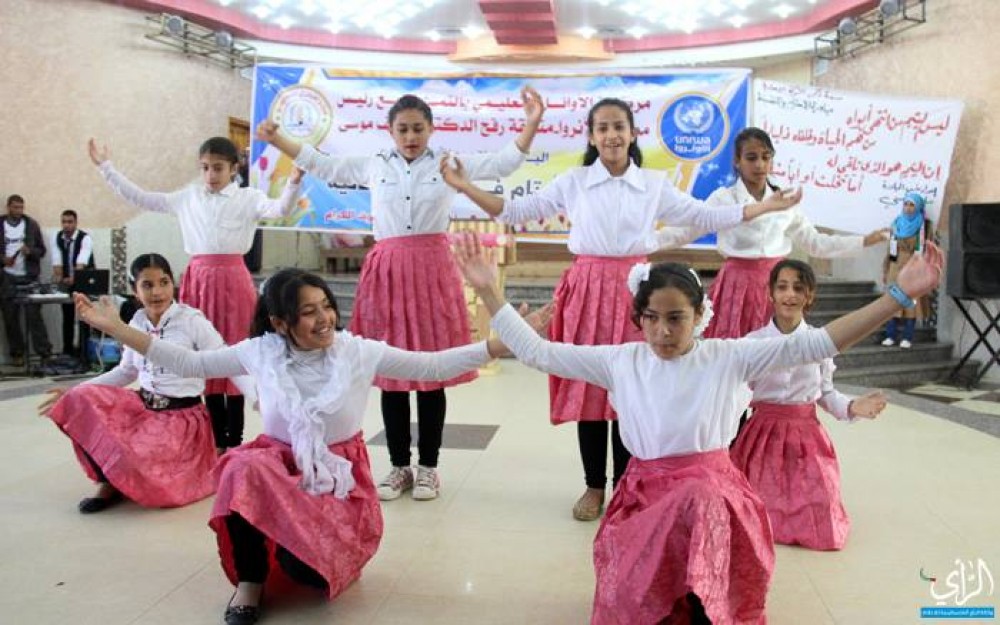 على أنغام أغنية "لكتب اسمك يا بلادي" تراقص الأطفال الأيتام من الطلاب والطالبات فرحاً بيومهم المفتوح.