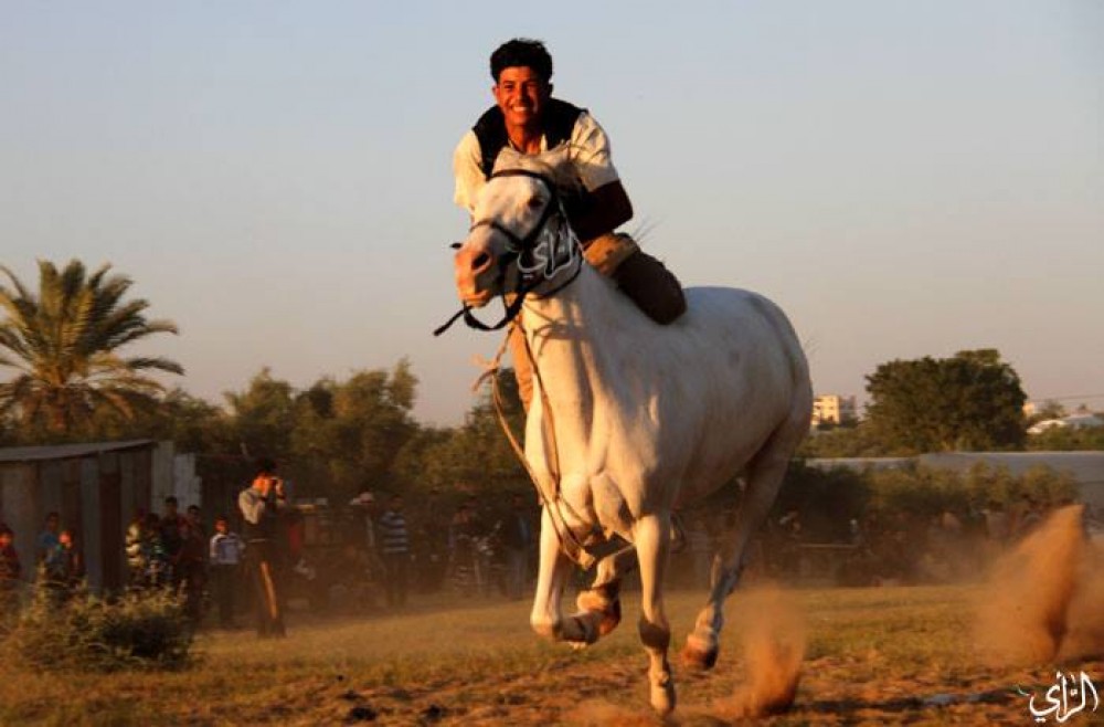 ويشارك في مضمار السباق المقام على أرضٍ تصل مساحتها 10 دونمات، ما يزيد عن 30 فارساً، يمتطون صهوات خيولهم من شتى أنحاء قطاع غزة، ضمن عرض أسبوعي يقدمونه كل يوم جمعة.