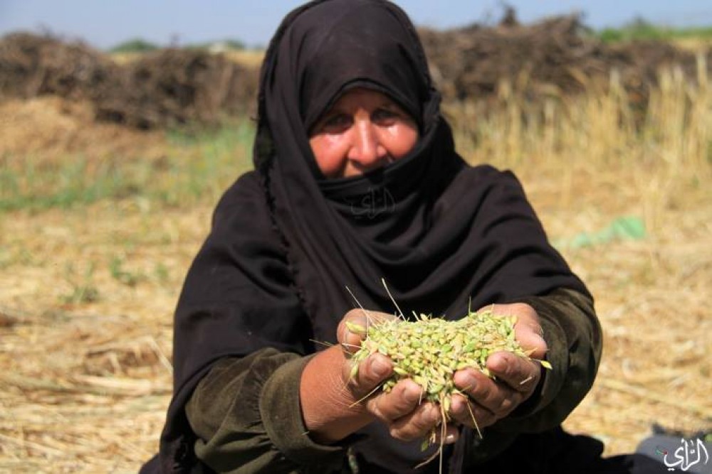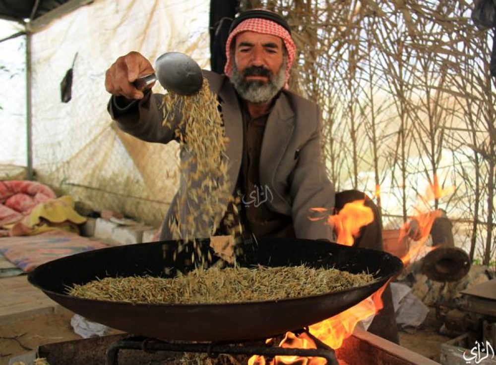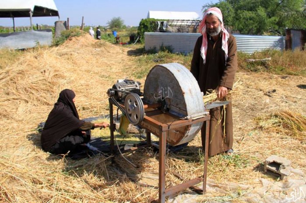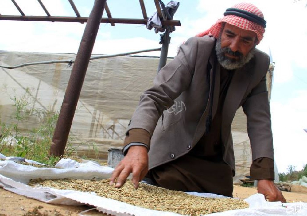 مع بزوغ أشعة شمس الصباح وانحسار قطرات الندى يستيقظ الحاج أبو أحمد معمر وأسرته لحصد محصول الشعير الذي اعتاد زراعته كل عام، فبعد أن انتظره أشهر عدة كي ينموا وتخضّر سنابله، يبدأ الحاج مرزوق بأدواته البدائية بحصد المحصول، فيستمر ما يقارب من 15-20 يوما.