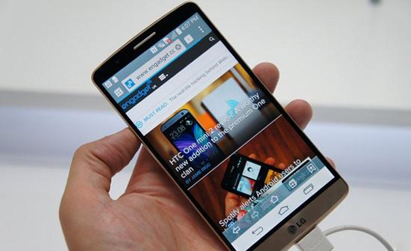 كشفت شركة إل جي الكورية الجنوبية، رسمياً، عن هاتفها الذكي G3 خلال حدث نظمته، بالعاصمة البريطانية، لندن. ويملك هاتف إل جي شاشة قياسها 5.5 بوصة بدقة وضوح 1440 x 2560 بكسل، ومعالج رباعي النواة سنابدراجون 801 بتردد 2.26 جيجاهرتز، فضلا عن كاميرا خلفية بدقة 13 ميجابكسل مدعومة بنظام تركيز تلقائي بالليزر وفلاش ضوئي مزدوج، وأخرى أمامية بدقة 2 ميجابكسل، ويعمل الهاتف بنظام التشغيل أندرويد 4.4 (كيت كات).