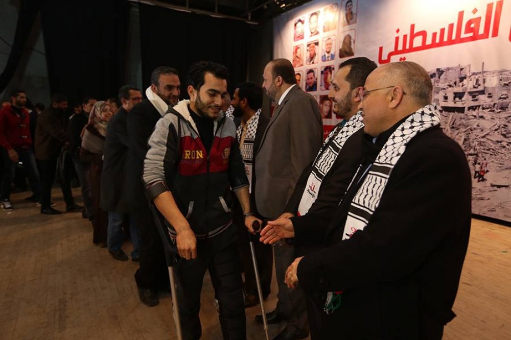 من جانبه تحدث عن الإعلاميين الصحفي المصاب حاتم موسى، وذلك خلال تصوير مسجل، حيث حيى الإعلاميين جميعاً، "تحية الوطن من قلب القدس لكم".