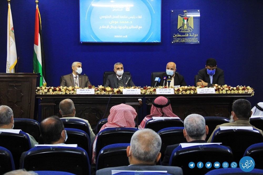 وضع الجميع عند مسؤولياته، وفي صورة الإجراءات والخطط التي تم اتخاذها وتنفيذها من قبل الأجهزة الحكومية، جراء جائحة كورونا، سياسية متبعة لدى لجنة المتابعة الحكومية، كان آخرها اللقاء الذي جمع د. محمد عوض رئيس اللجنة، ووكيل وزارة الصحة د. يوسف أبوالريش، ووكيل وزارة الداخلية اللواء توفيق أبونعيم، مع الوجهاء والمخاتير ورجال الإصلاح.