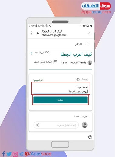 كيفية حل الطالب الواجب في برنامج Classroom للاندرويد