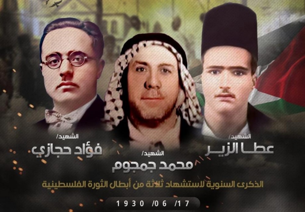 تصادف اليوم، الـ17 من حزيران، الذكرى الـ93 على إعدام سلطات الانتداب البريطاني المناضلين الثلاثة محمد جمجوم، وفؤاد حجازي، وعطا الزير.