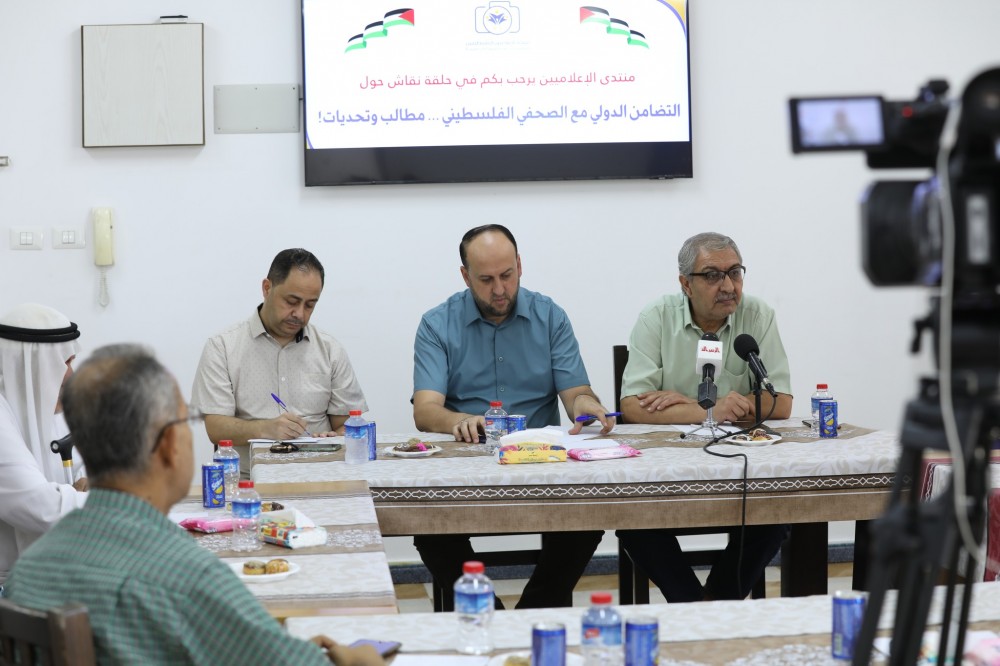 جاء ذلك خلال حلقة نقاش بعنوان:” التضامن الدولي مع الصحفي الفلسطيني..مطالب وتحديات”، نظمها منتدى الإعلاميين الفلسطينيين، اليوم الأحد بمقره بمدينة غزة، وذلك على شرف اليوم العالمي للتضامن مع الصحفي الفلسطيني الذي يوافق السادس والعشرين من سبتمبر كل عام.