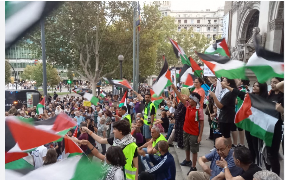 وحمل المتظاهرون الأعلام الفلسطينية واليافطات التي تدعو إلى وقف حملة التطهير العرقي والابادة الجماعية بحق الشعب الفلسطيني، والتي كان اخرها المجزرة البشعة في غزة، والتي راح ضحيتها المئات من المدنيين والأطفال.