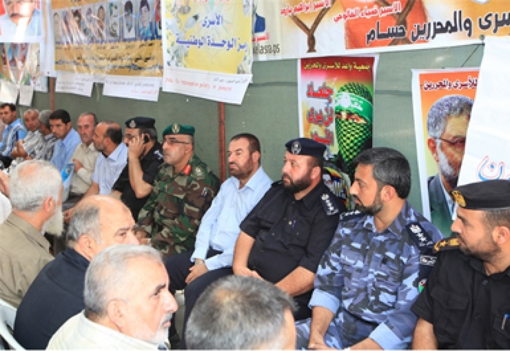 بدوره ألقى الدكتور كمال تربان رئيس هيئة التوجيه السياسي والمعنوي كلمة وزارة الداخلية معبراً فيها عن مؤازرة وتضامن وزارة الداخلية بكافة قياداتها وجنودها مع الأسرى الصامدين في سجون الاحتلال.